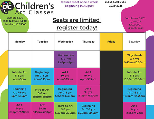 We are an approved vendor for Empowering Parents Idaho – Classwallet. Search within direct pay vendors “Children’s Art Classes- Meridian” at classwallet.com